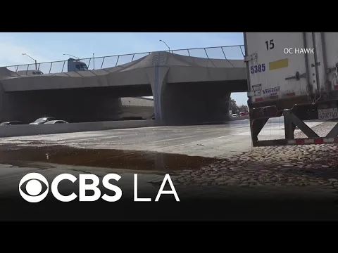 Syrup is great on waffles and pancakes, but not so great as a road topping. That’s what motorists found out when all 4 westbound lanes of the 10 Freeway in Fontana, California were closed after a big rig hauling syrup flipped, spilling the sticky liquid all over the road. The freeway remained closed for hours as road crews tried everything they could think of to clean up the mess. Never heard them mention hot water, though, which seems like the obvious solution.