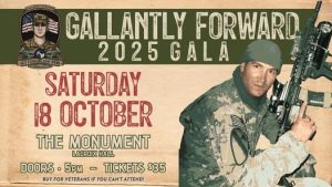 We are honored to invite you to our 12th Annual Gallantly Forward Gala on Saturday, October 18, 2025. This special evening unites our community to raise awareness and support for our brave warriors who continue to struggle with the invisible wounds of Post-Traumatic Stress Disorder (PTSD) and Traumatic Brain Injury (TBI).