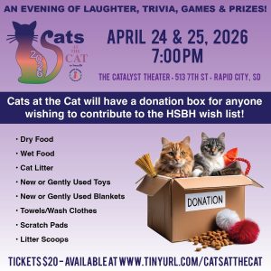 A portion of all ticket and merch sales will benefit the Humane Society of the Black Hills as they build their incredible new Kitty City!