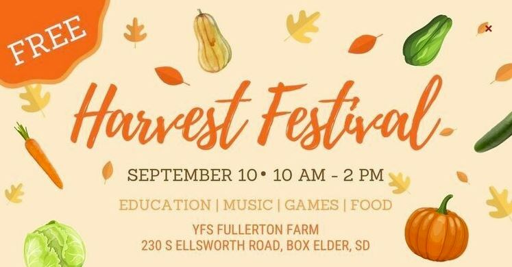 Join Youth & Family Services (YFS), Live Well Black Hills, and SDSU Extension for the 5th Annual Harvest Festival at YFS’ Fullerton Farm on September 10th from 10am – 2pm!